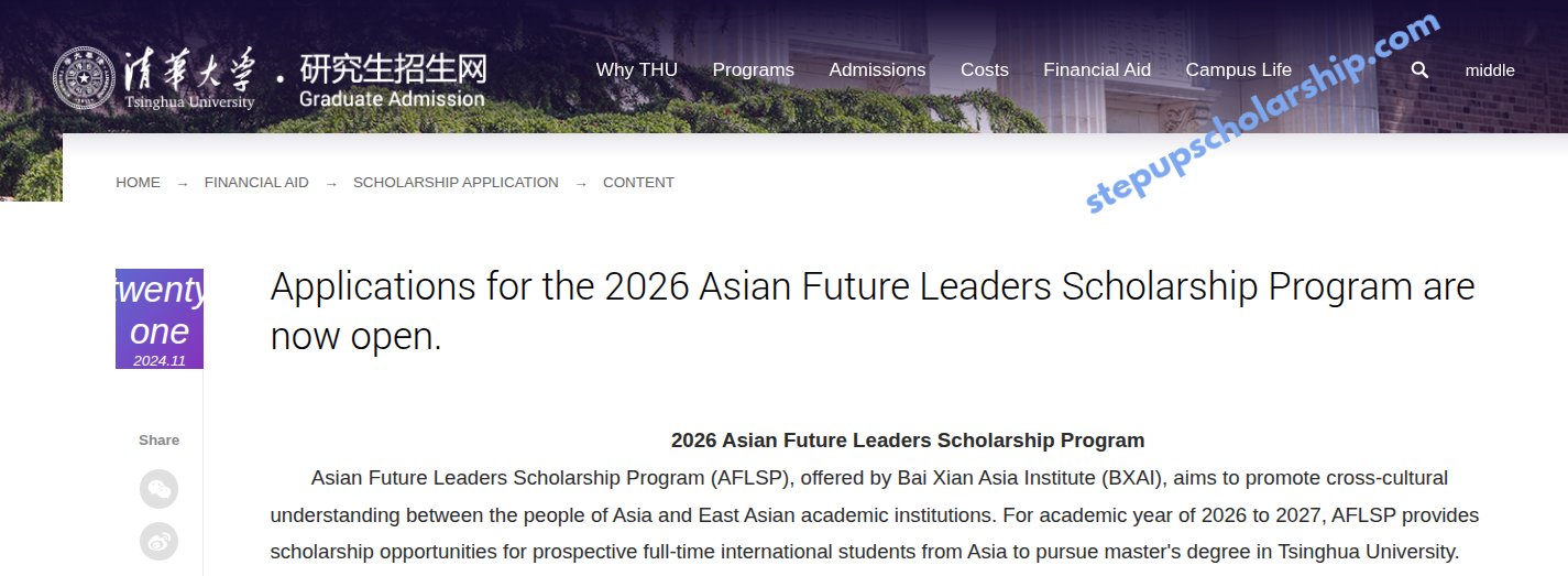 Asian Future Leaders AFLSP Scholarship 2026 at at Tsinghua University China